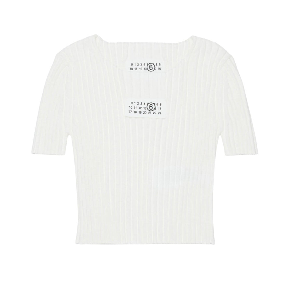 MM6 Maison Margiela Maglia Avorio A Costine Con Patch Logo M60989-MM07X-M6101
