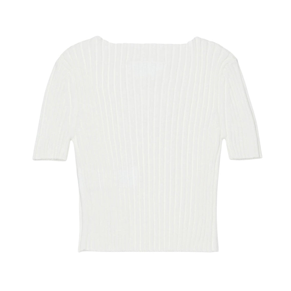 Maglia a coste realizzata in filato di cotone, caratterizzata da scollo rotondo, maniche corte e orlo dritto. È decorata con patch Numeric Logo applicata sul petto.