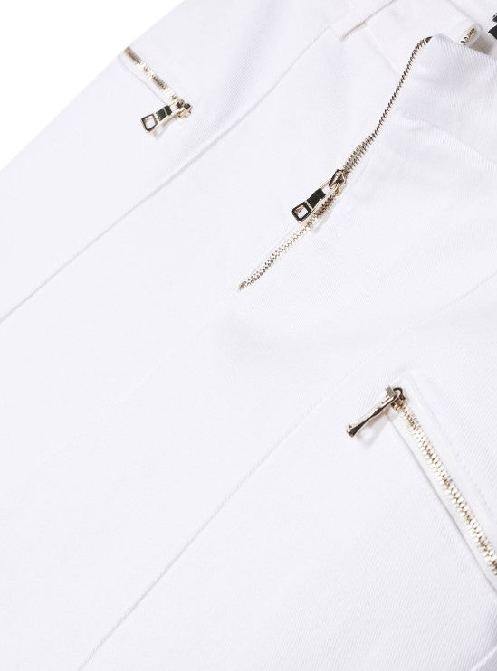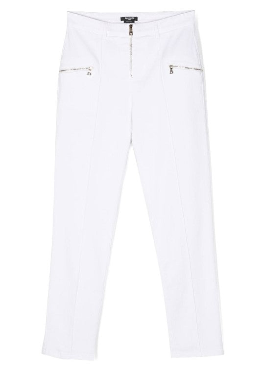 Pantalone in denim di cotone, chiusura laterale con zip.