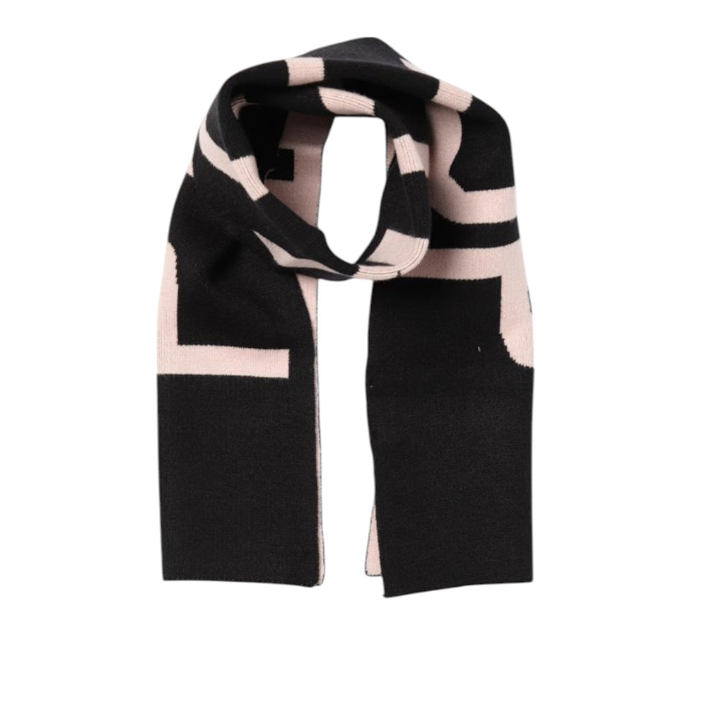 Sciarpa nera da bambina realizzata in misto viscosa, con logo ad intarsio.