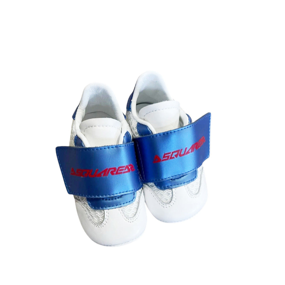 e chiusura a strappo di colore blu cangiante su cui compare la scritta rossa del logo
