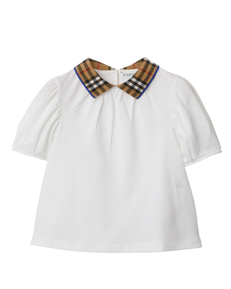 Polo realizzata in piquet di cotone, caratterizzata da colletto con motivo Vintage Check, maniche corte a sbuffo, chiusura posteriore con bottoncino e orlo dritto.