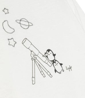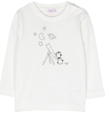Crew neck m/s T-shirt, with embroidery on the front and fastening clips on the shoulder.