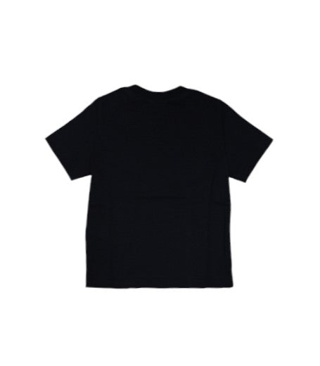 Crew neck short sleeve T-shirt with logo and print on the front. Closure clips on the shoulder.