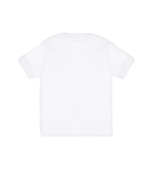 Crew neck short sleeve T-shirt with iconic logo printed on the front. Closure clips on the shoulder.