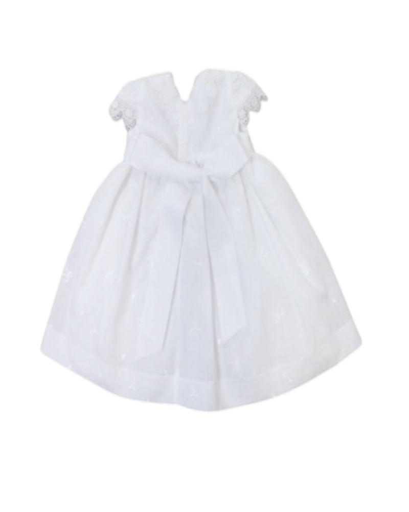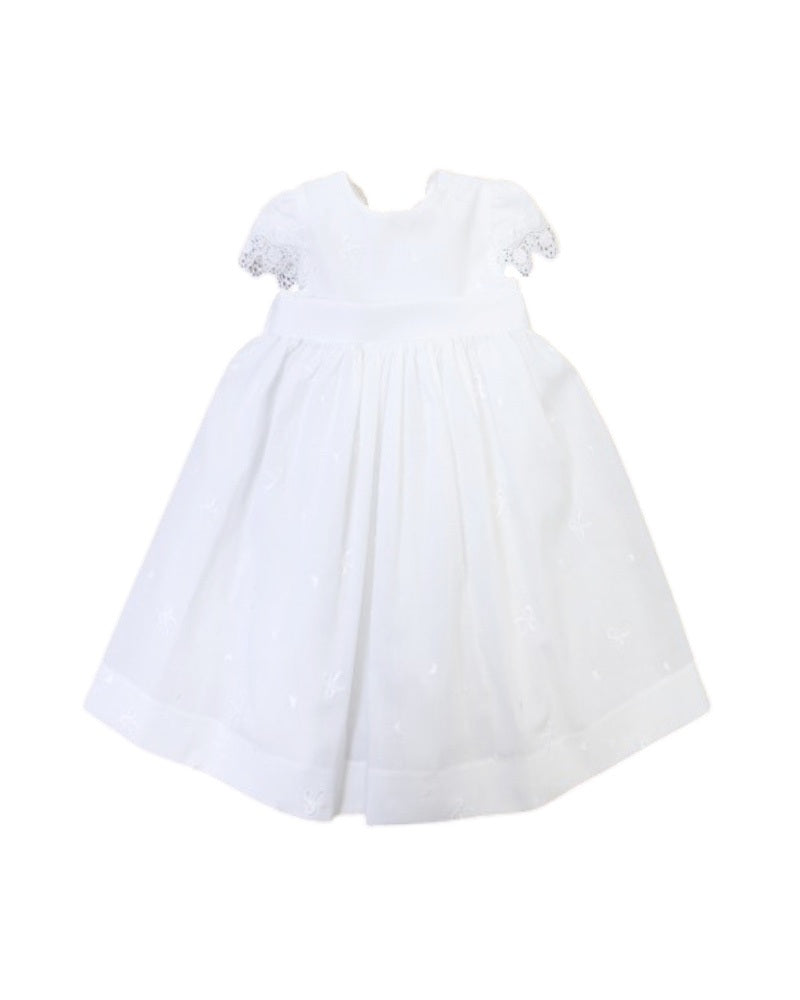 vestina cerimonia in batista fantasia fiocchi tono su tono manica a aletta in pizzo