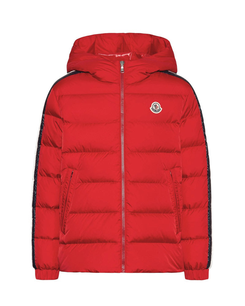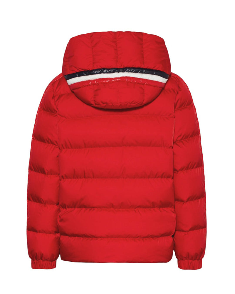 Steppjacke, feste Kapuze, Reißverschluss, schräge Taschen mit Reißverschluss, aufgesetztes Logo.