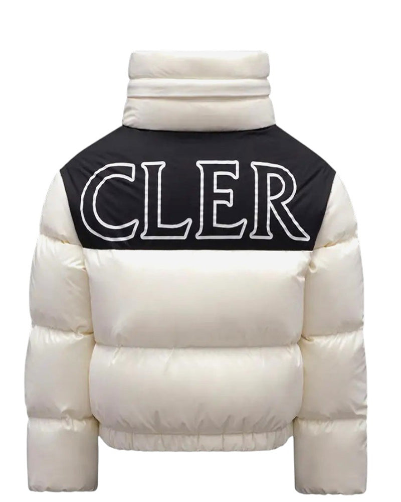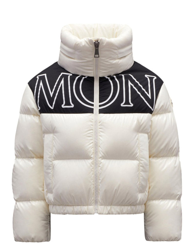 Steppjacke mit abnehmbarer Kapuze, verkürztes Modell, Reißverschluss vorne, Leistentaschen mit Clips, kontrastierender Logodruck auf der Vorderseite.