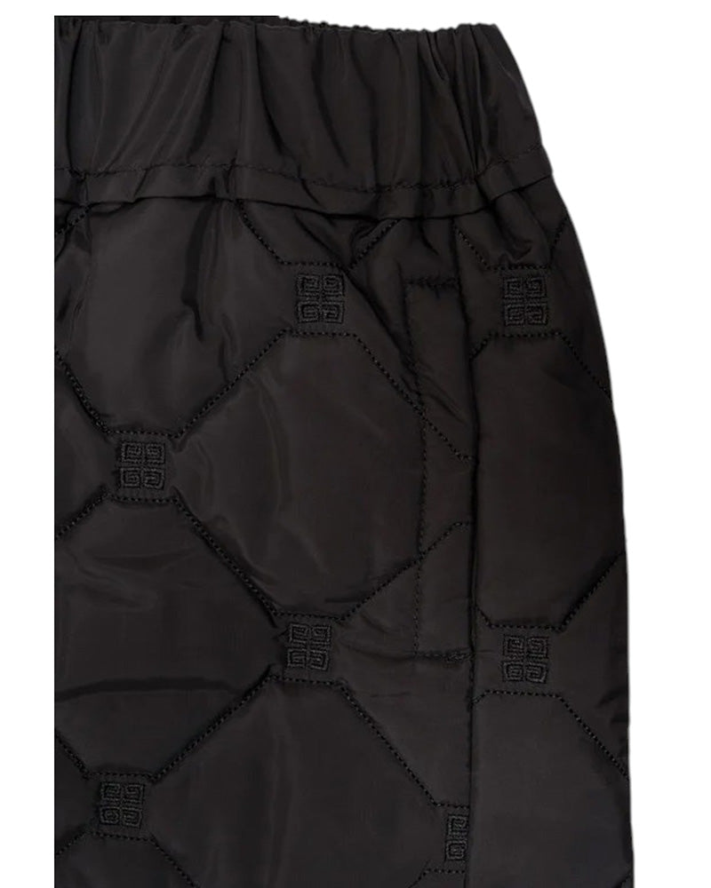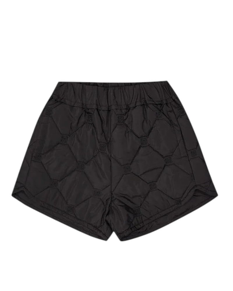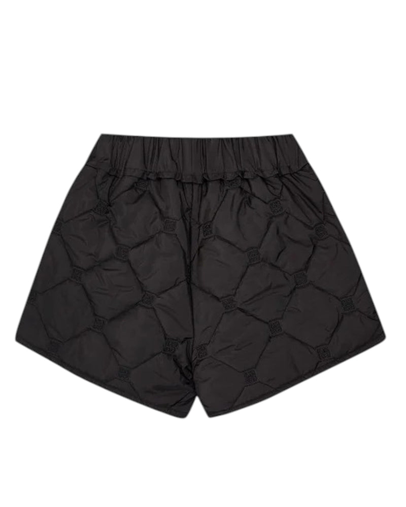 Shorts imbottiti realizzati in tessuto tecnico da bambina. Presentano design trapuntato, motivo logo ricamato all-over, vita elasticizzata e tasche laterali a filo.