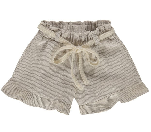 Cordshorts mit Rüschen am Saum und elastischem Bund mit Wollriemen.