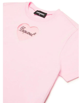 Dsquared2 T-shirt rosa con logo in strass DQ2576-D0AAP