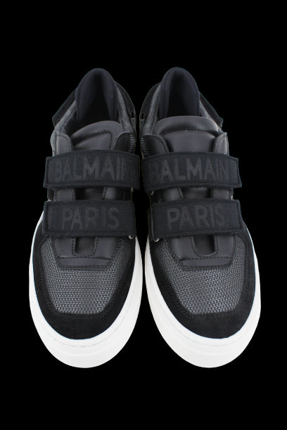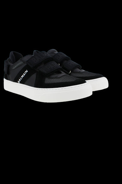 Balmain-Sneaker aus schwarzem Leder und Wildleder.