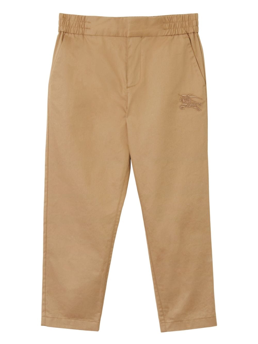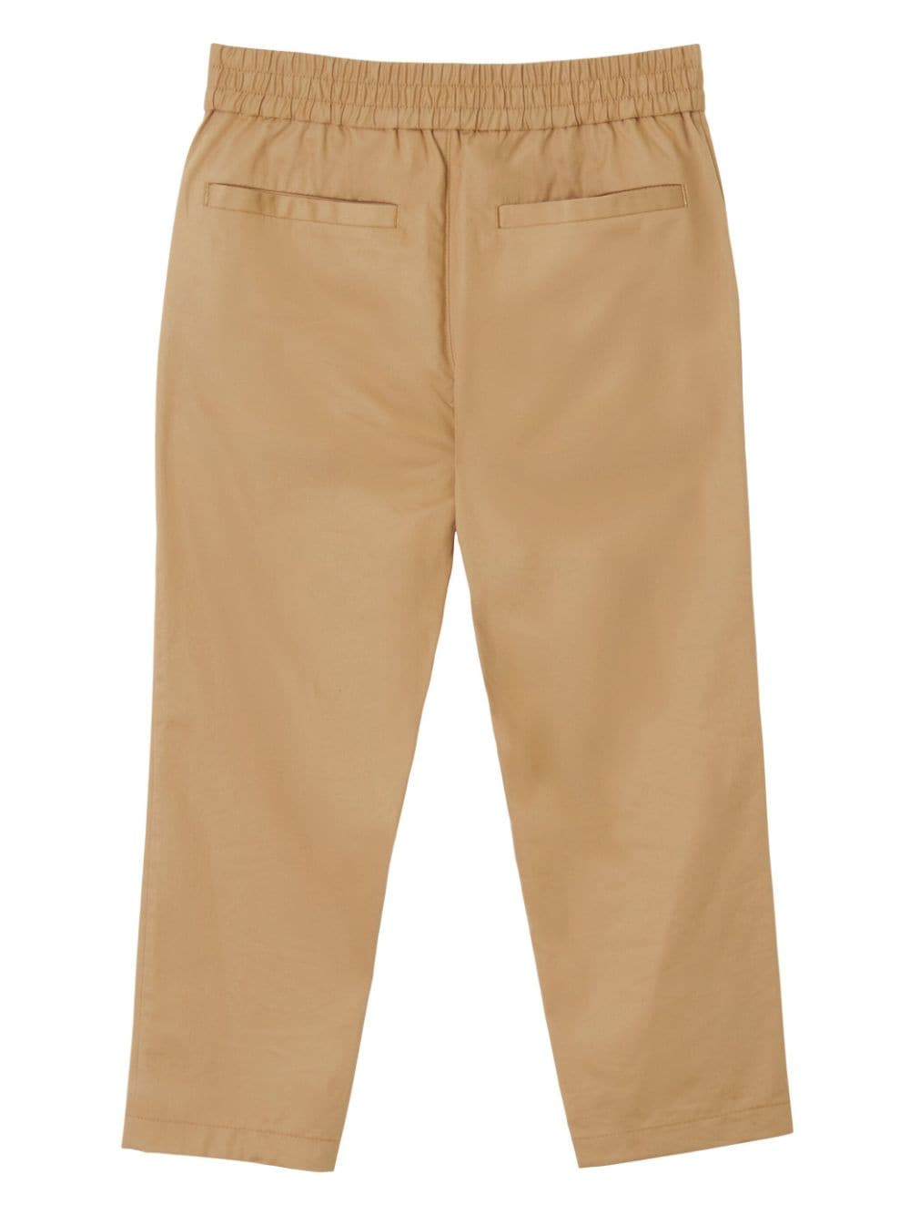 Baumwollhose für Kinder mit elastischem Bund, geradem Bein, aufgesticktem Symbol auf der Vorderseite und seitlichen Amerika-Taschen.