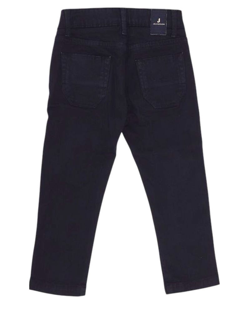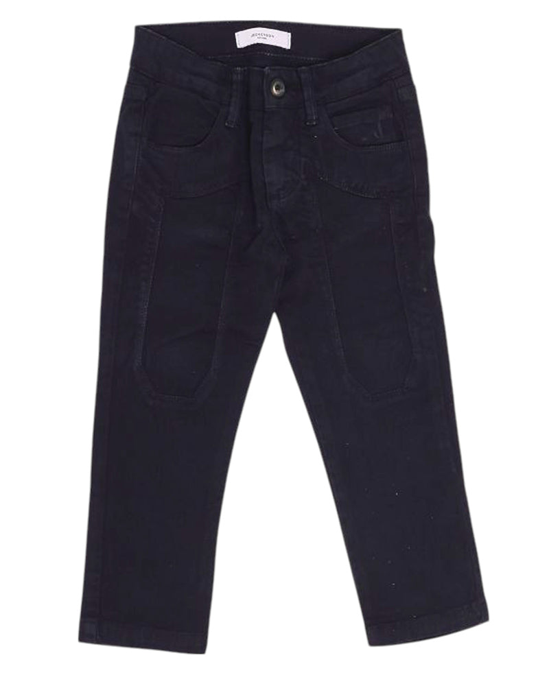Pantaloni da bambino realizzati in gabardina di cotone. Modello cinque tasche. Presentano chiusura frontale con bottone e zip, vita regolabile grazie ad elastico interno con bottoni, passanti per cintura e patch logo applicato sul retro.