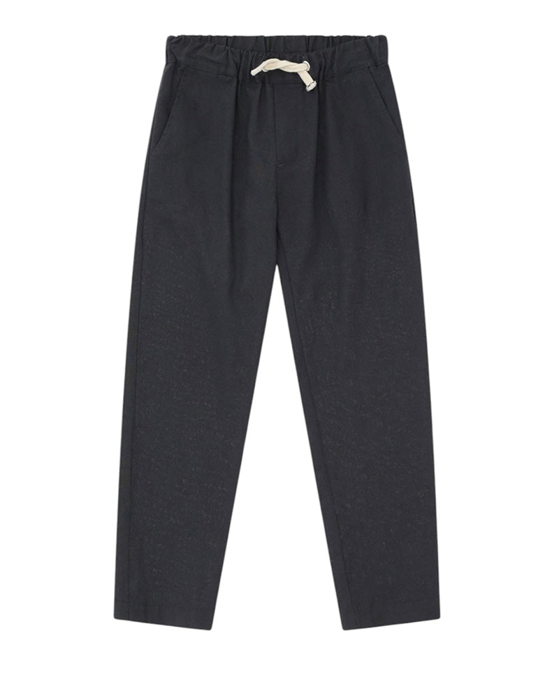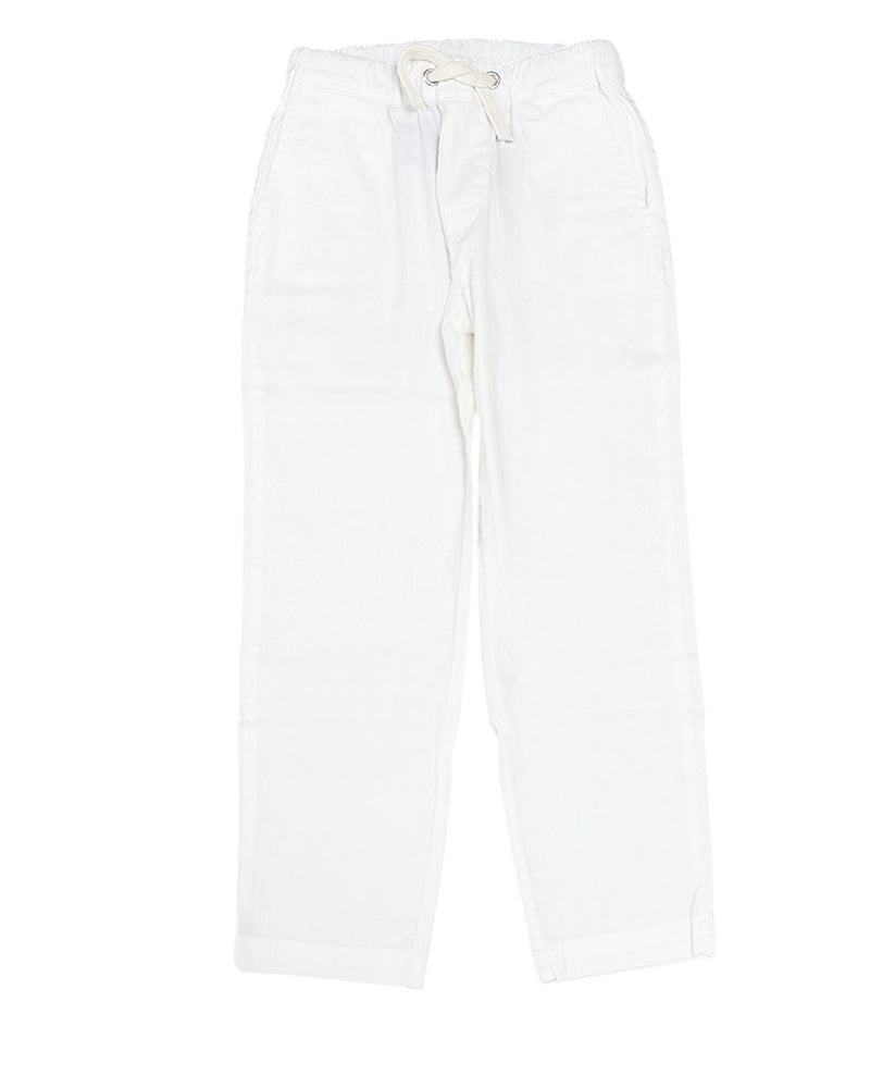 Pantaloni realizzati in misto lino, vita elasticizzata, coulisse in vita, tasche laterali.