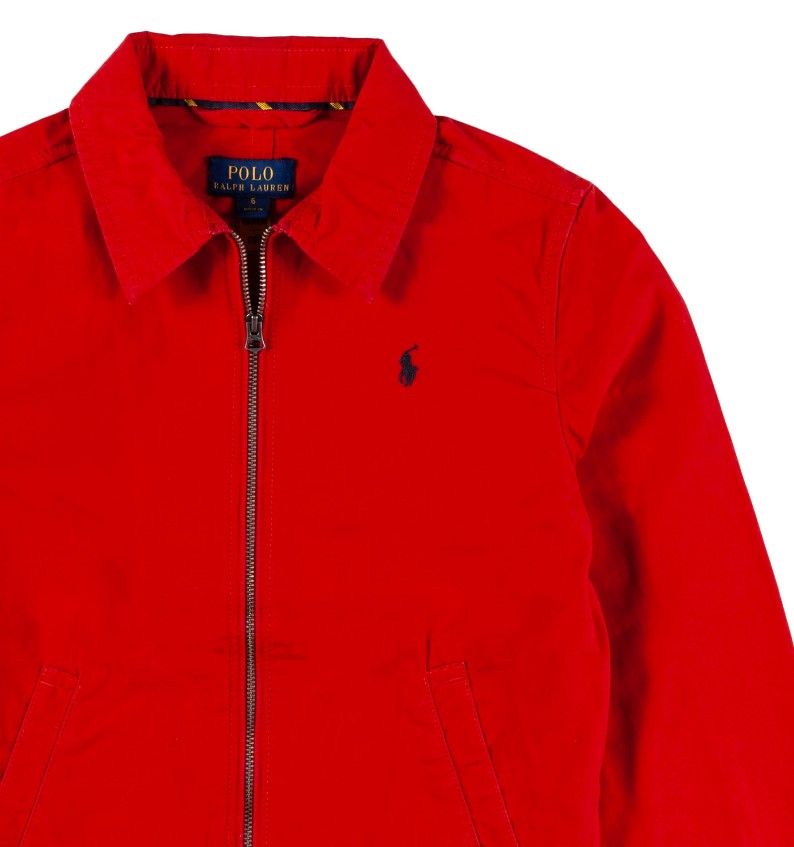Baumwolljacke, Reißverschluss vorne, seitliche America-Taschen, Gummizug an Saum und Bündchen, gesticktes Logo auf der Brust.