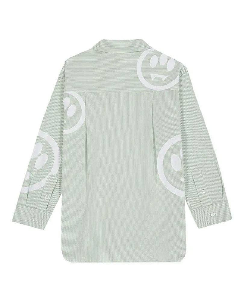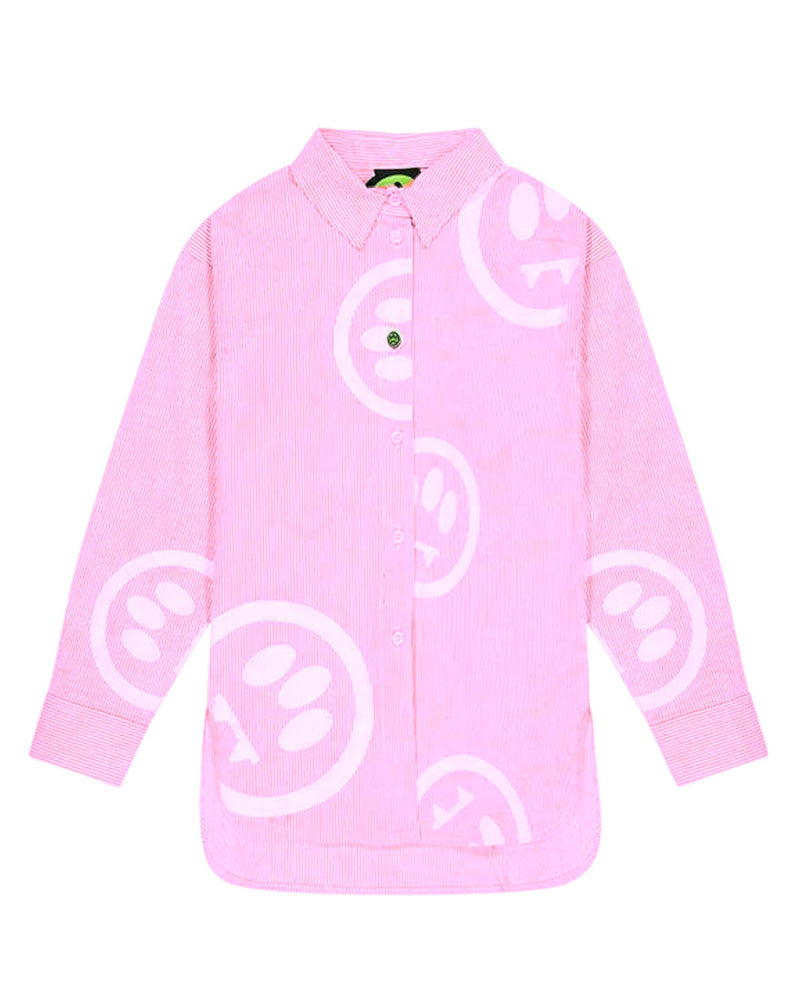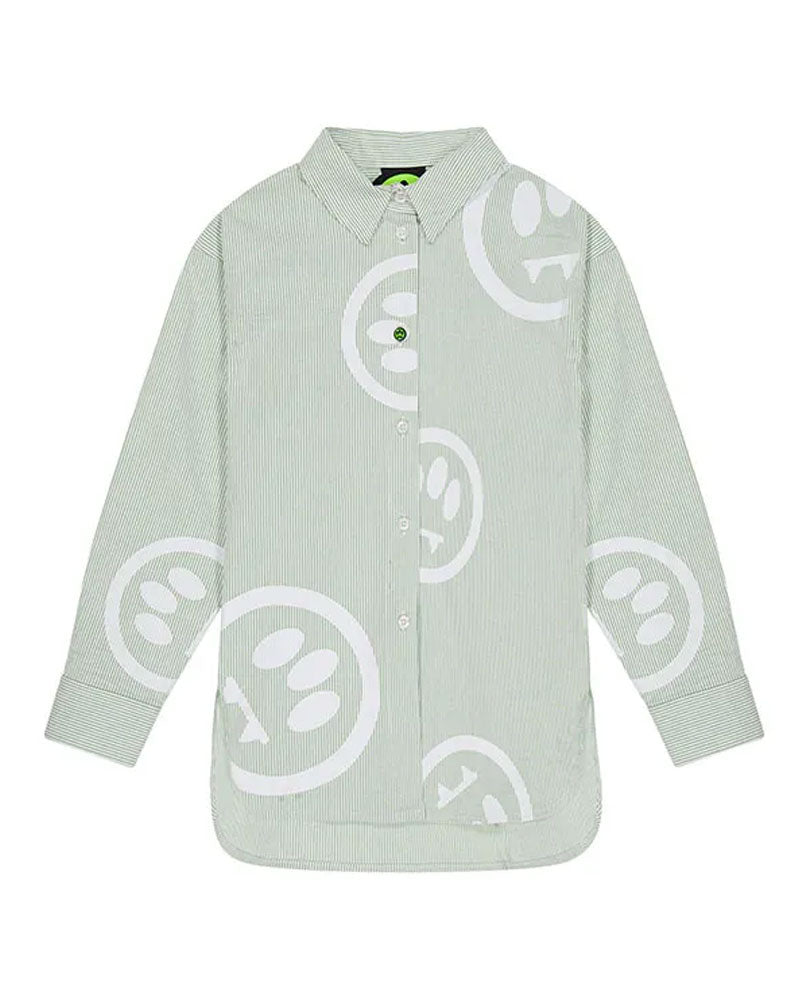 Camicia in popeline a righe, chiusura frontale con bottoni, maniche lunghe e stampa smile all-over.