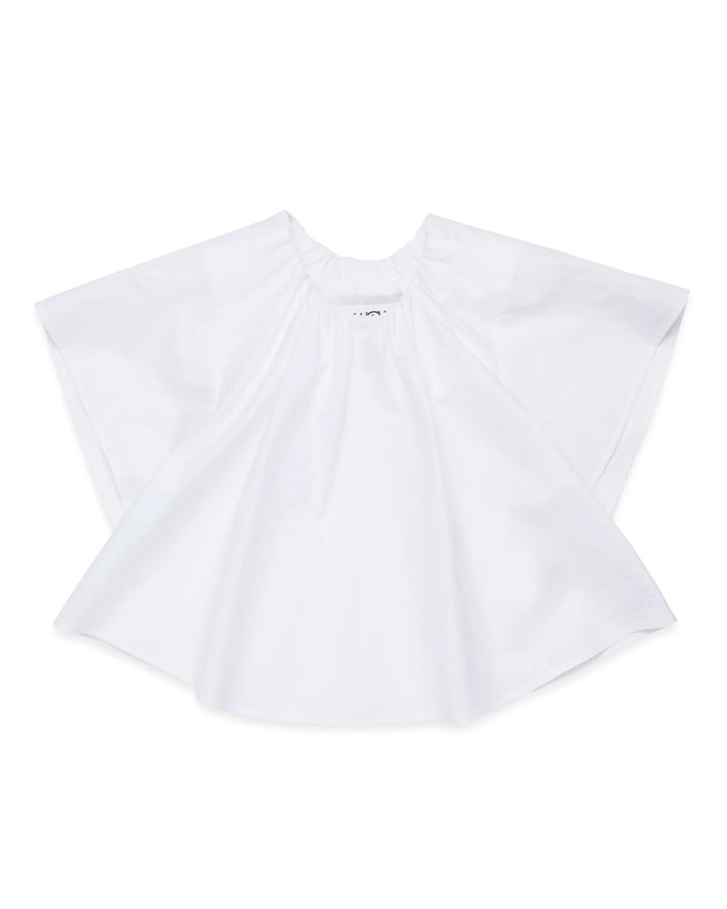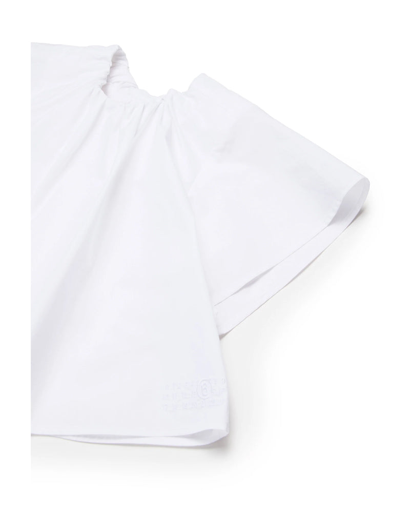 Camicia a maniche corte in popeline. Riprese sul collo con arricciature lungo il capo. Numeric logo sul fondo in tono colore. Iconica cucitura sul retro.