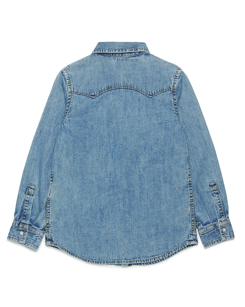 Camicia a maniche lunghe realizzata in denim di cotone. Chiusura con bottoni a pressione. Taschini sul petto. Presenta l'iconico logo Oval D ricamato a contrasto colore sul davanti lato cuore. Cuciture a contrasto cromatico.