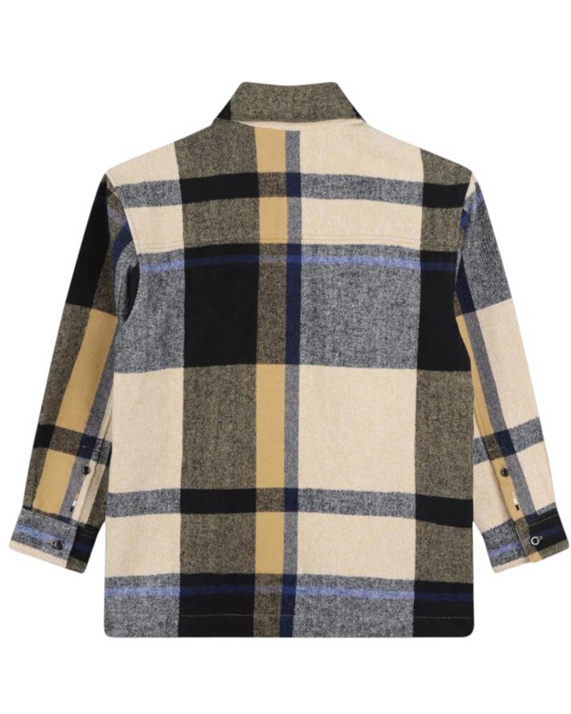 Camicia da bambino realizzata in flanella di cotone. Presenta fantasia a quadri, colletto a punta, maniche lunghe con bottoni ai polsi, chiusura frontale con bottoni, due tasche a filo laterali e tasca applicata sul petto con patch logo.