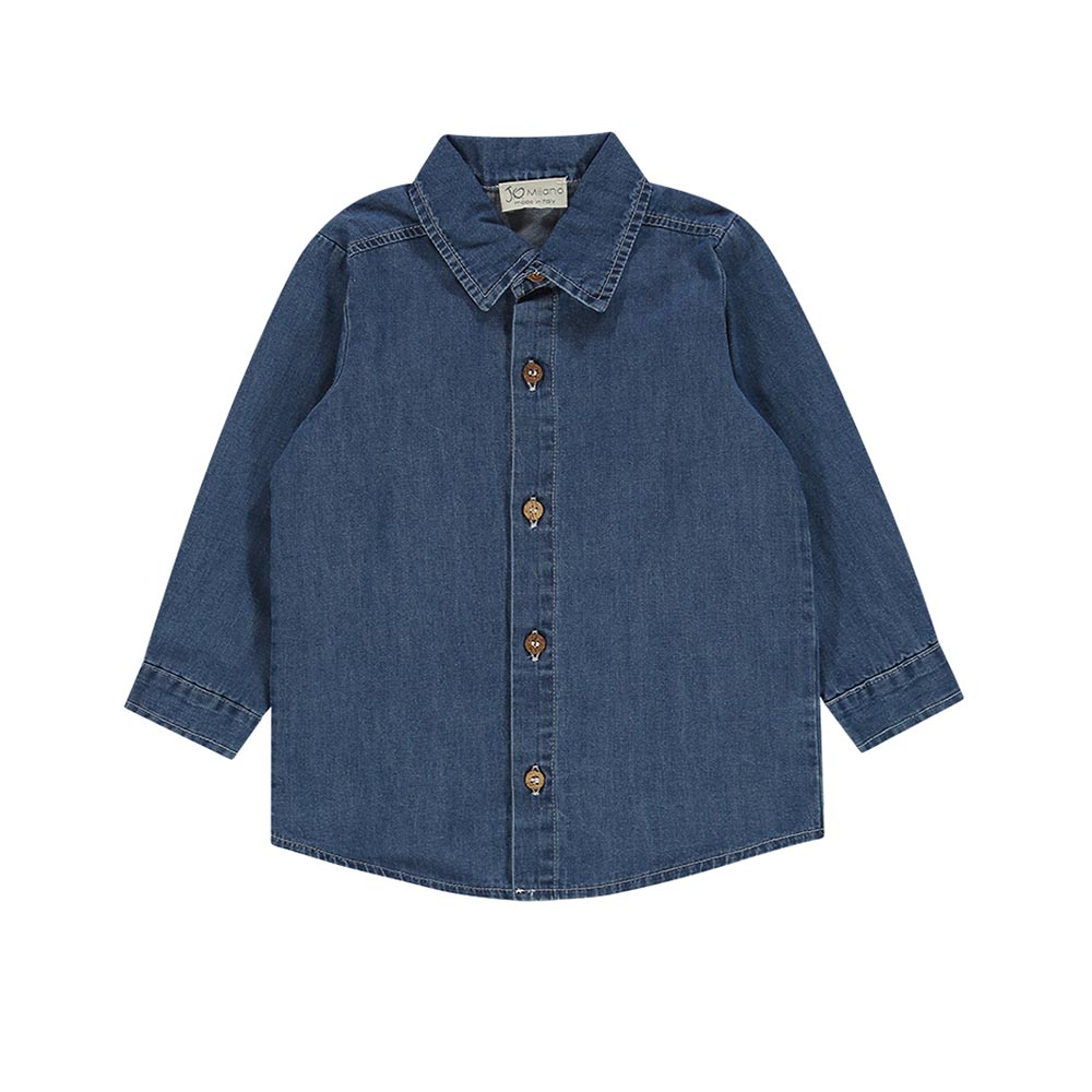 Camicia realizzata in denim di cotone, caratterizzata da colletto a punta, chiusura frontale con bottoncini, maniche lunghe e orlo curvo.