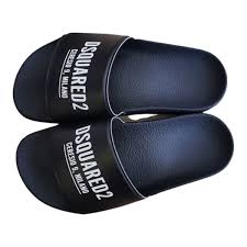 Dsquared2-Hausschuhe mit Schriftzug vorne.