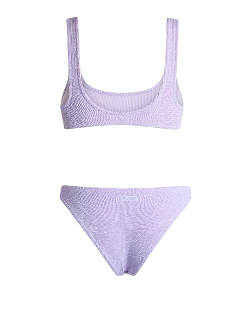 Costume Mc2 Saint Barth bikini top crinkle lurex, tessuto goffrato elastico, slip classico, top con scollo tondo e bretelle larghe.