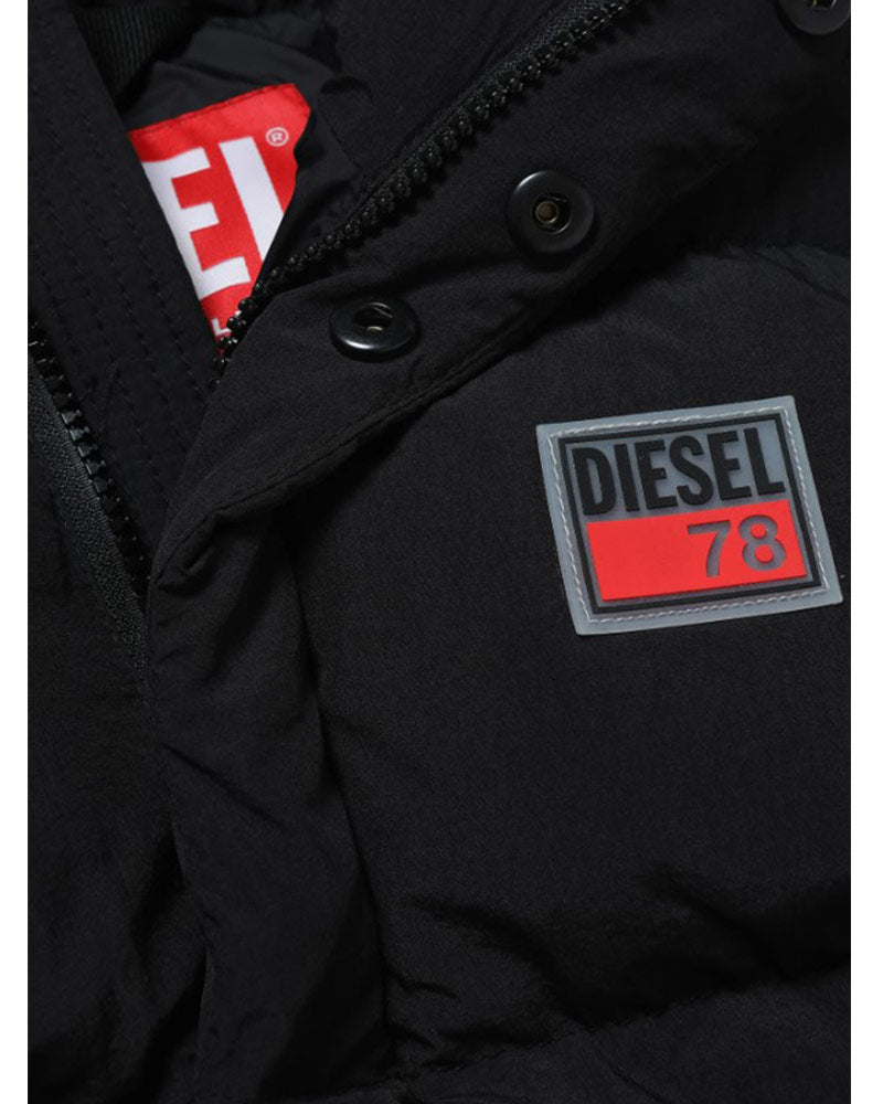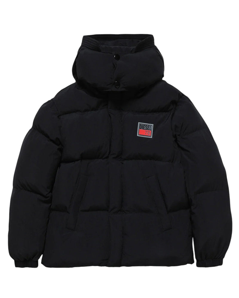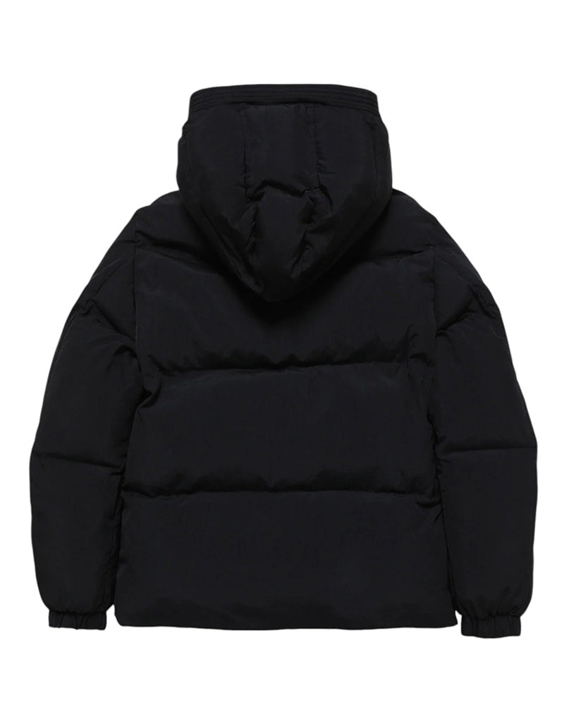 Steppjacke mit abnehmbarer Kapuze, Frontverschluss mit Reißverschluss und Clips, seitliche America-Taschen mit Clips, Logo-Patch-Applikation auf der Brust.