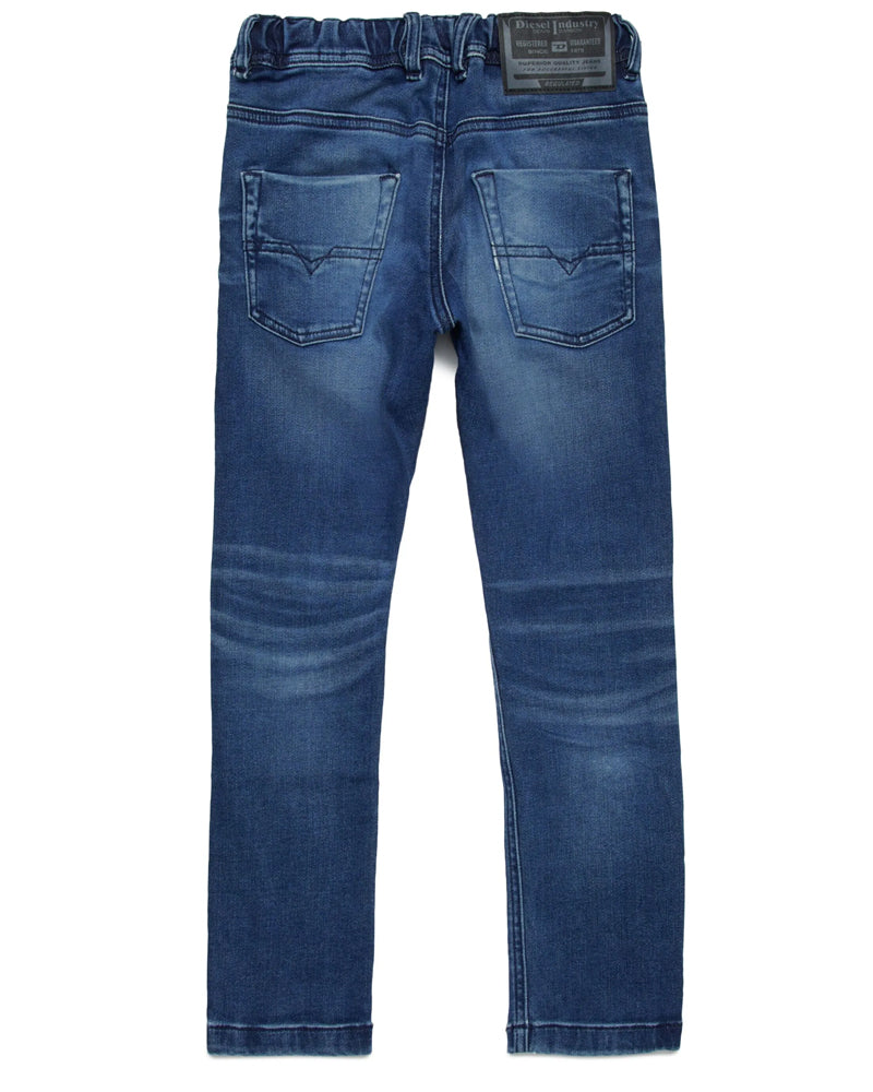 Jeans skinny con coulisse in vita e lavaggio a metà. Caratterizzati da un effetto baffi, taglio magro e cinque tasche classiche.
