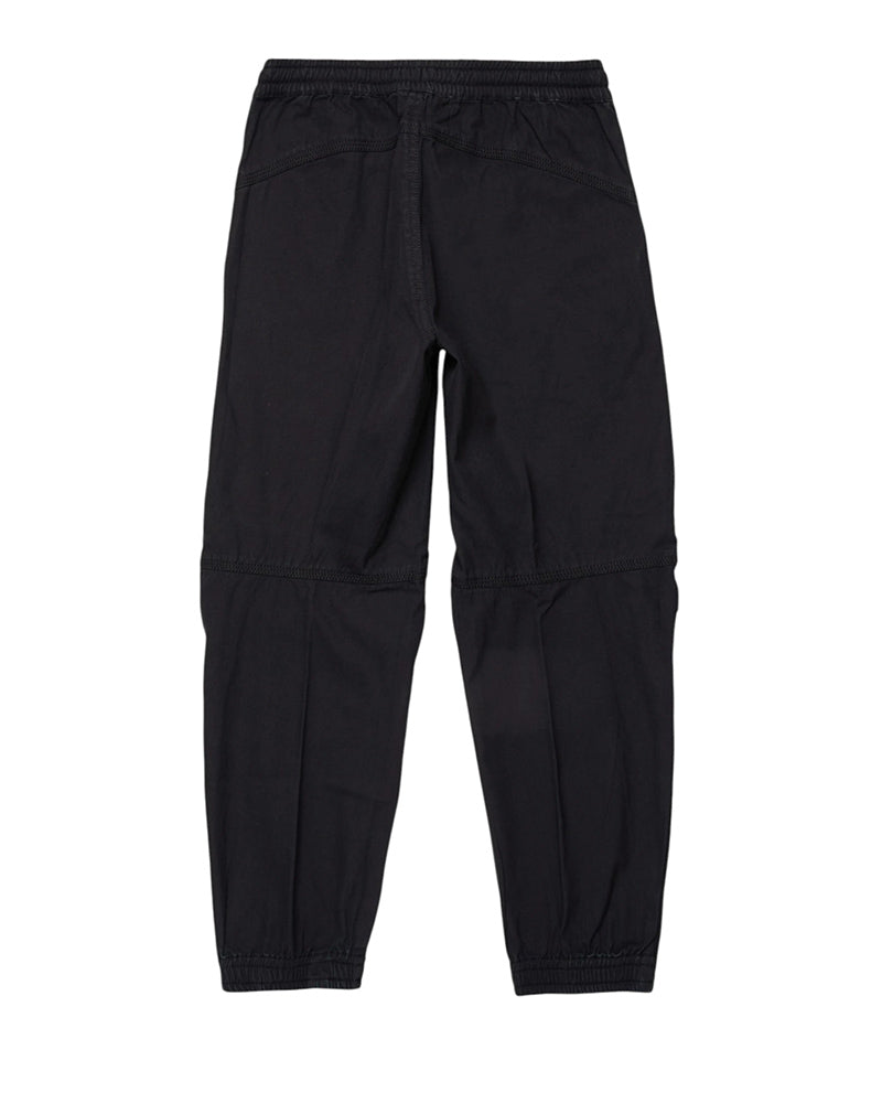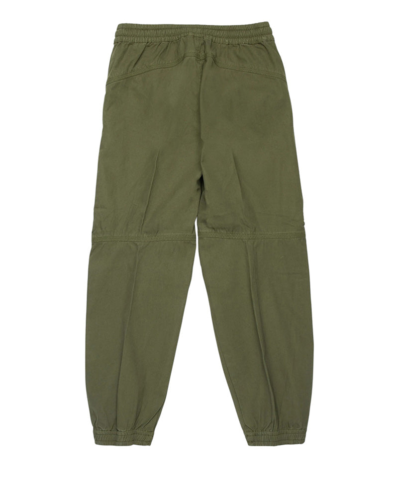 Pantaloni cargo realizzati in cotone da bambino. Presentano vita elasticizzata con coulisse, tasche laterali america, tasche cargo ai lati e fondo elasticizzato. Sono decorati con logo ricamato sulla parte anteriore.