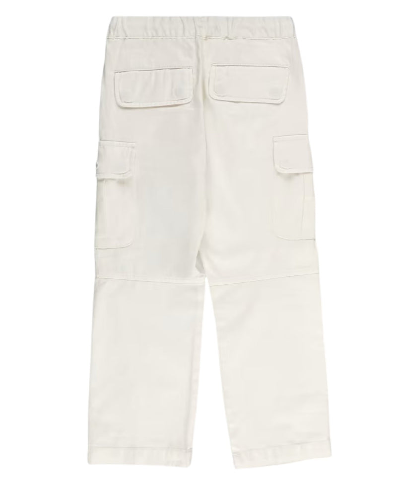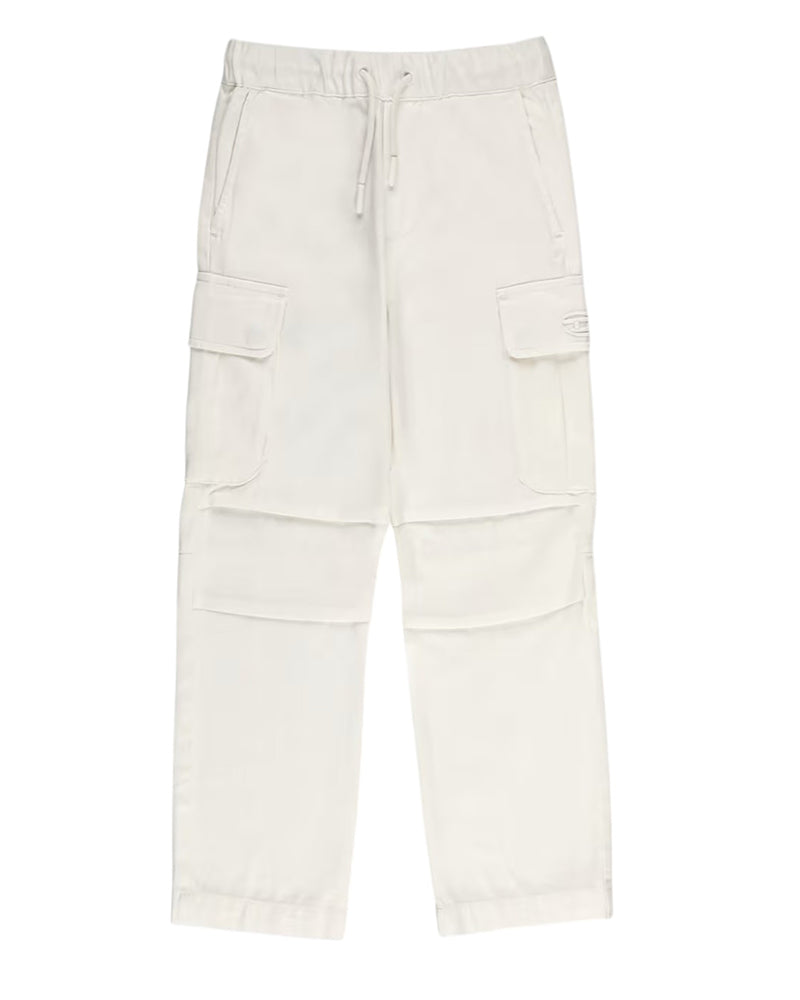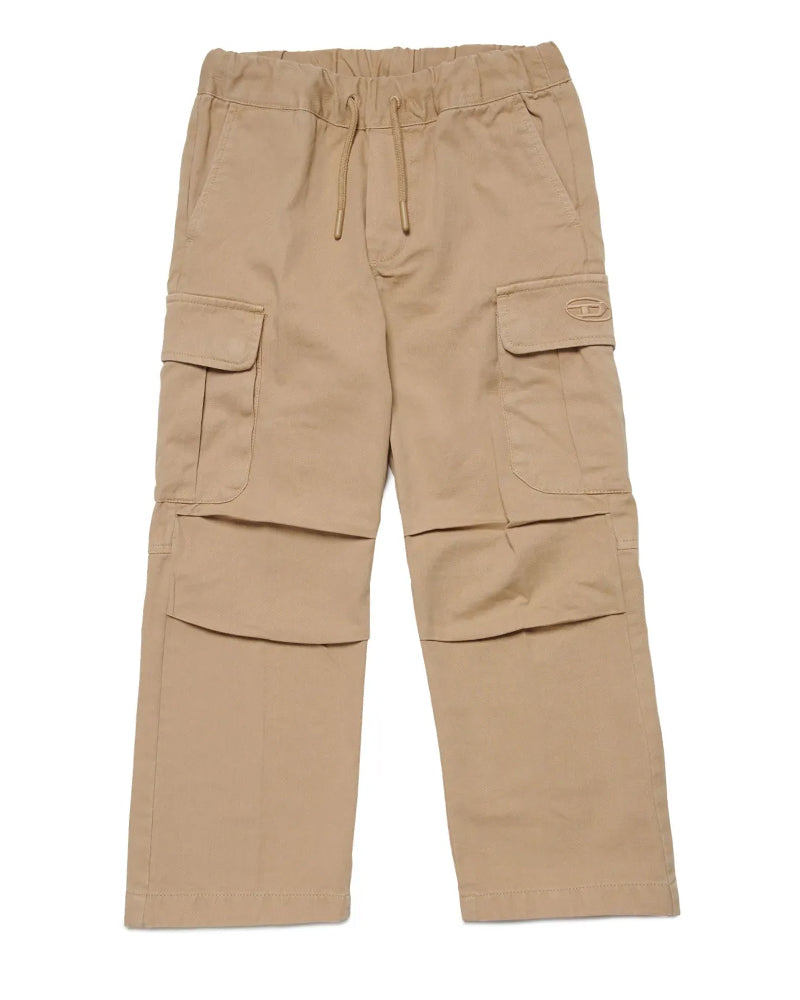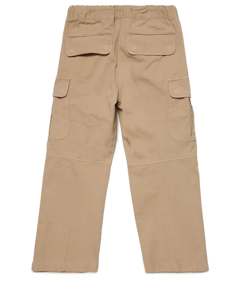 Pantaloni cargo a vita media con cintura elasticizzata e coulisse regolabile. Dotati di due tasche laterali a fessura, due tasche posteriori con patta e due tasche cargo laterali. Presentano logo ricamato sul lato, dettagli a pieghe e gamba dritta. Completati da ricamo ovale con lettera D.