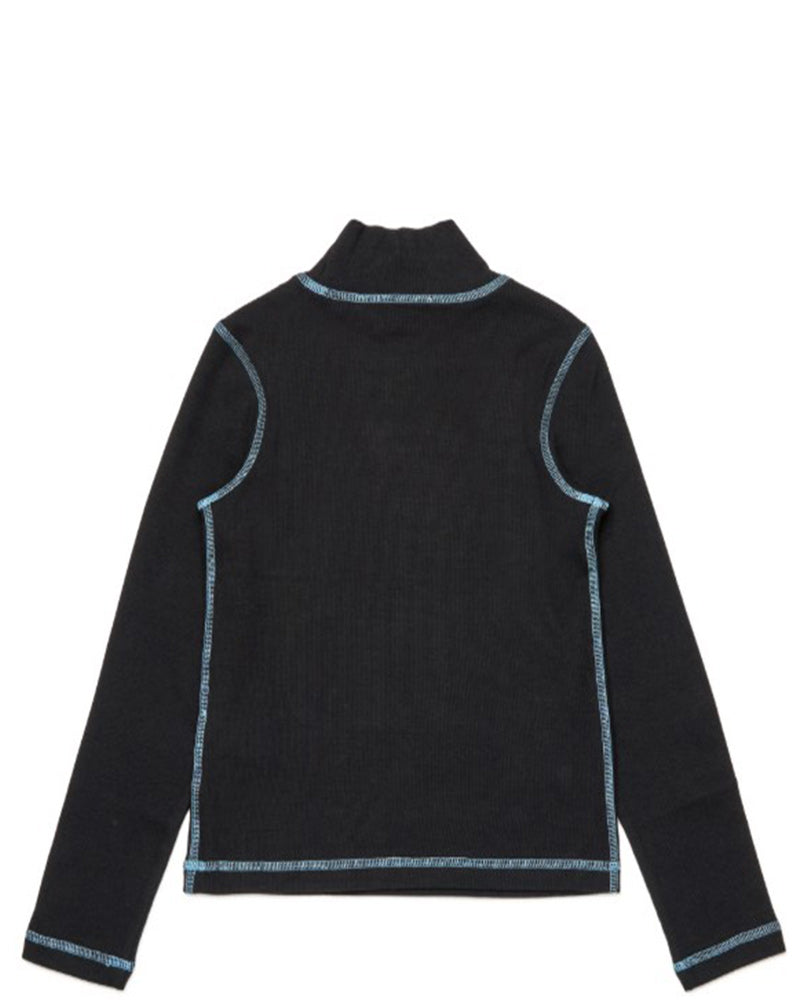 Lupetto realizzato in cotone elasticizzato a coste da bambina. È decorato con cuciture sovrapposte a contrasto e logo ricamato sul petto.