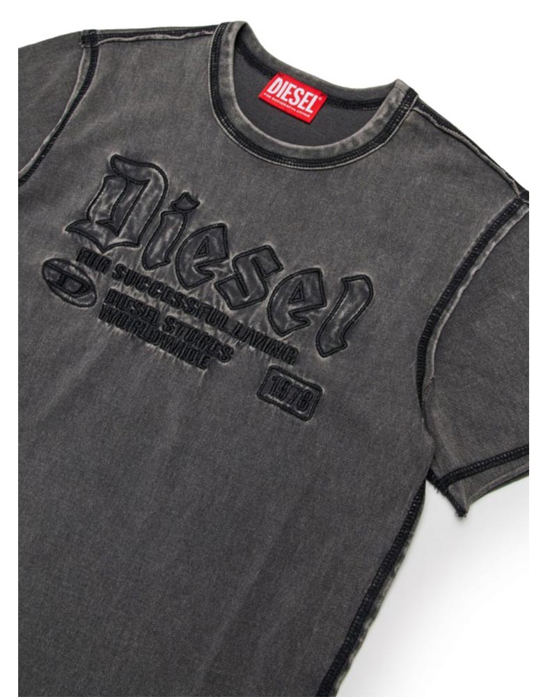 T-shirt realizzata in jersey di cotone effetto vissuto, con cuciture sovrapposte. Modello è caratterizzato da collo tondo, maniche corte, orlo dritto e finiture a taglio vivo. Grafica Diesel For Successful Living ricamata in outline.