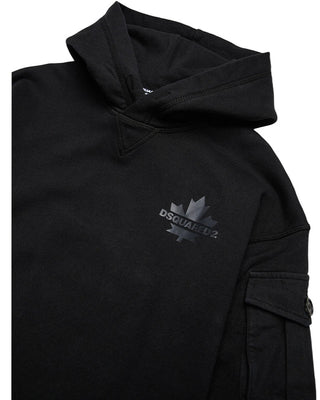 Dsquared2 Felpa nera in cotone con cappuccio e logo DQ2735 D0AC6