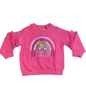 Sweatshirt mit Rundhalsausschnitt, kontrastierendem Symboldruck auf der Vorderseite, Rüschen an den Ärmeln und Clips an der Schulter.