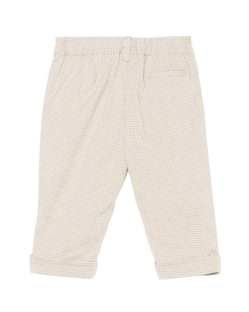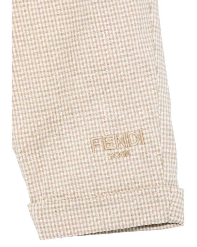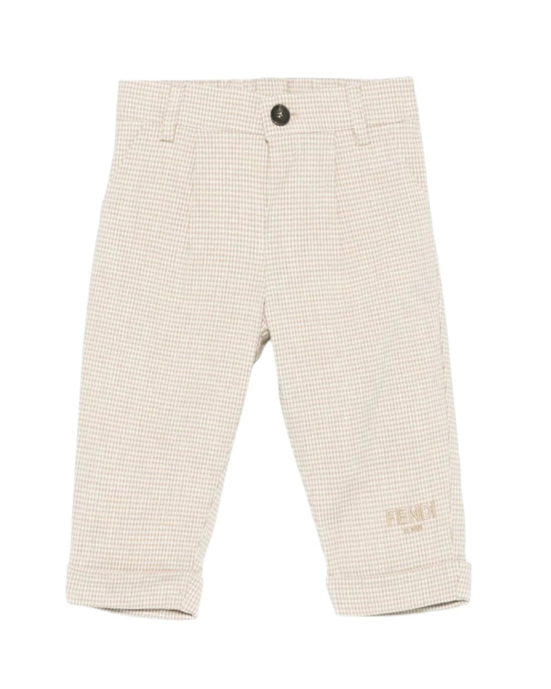 Pantaloni classici da neonato Fendi Kids. Presentano fantasia Vichy, chiusura frontale con bottoncino, vita elasticizzata sul retro, passanti per la cintura, tasche laterali all'americana e orlo con risvolto. Sono decorati con logo Fendi Roma ricamato sul davanti.