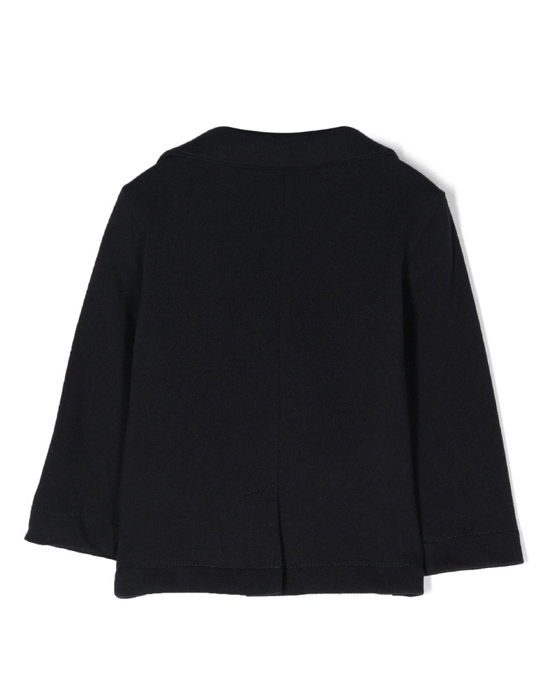 due tasche applicate frontali, spacco centrale posteriore, orlo dritto, design senza fodera