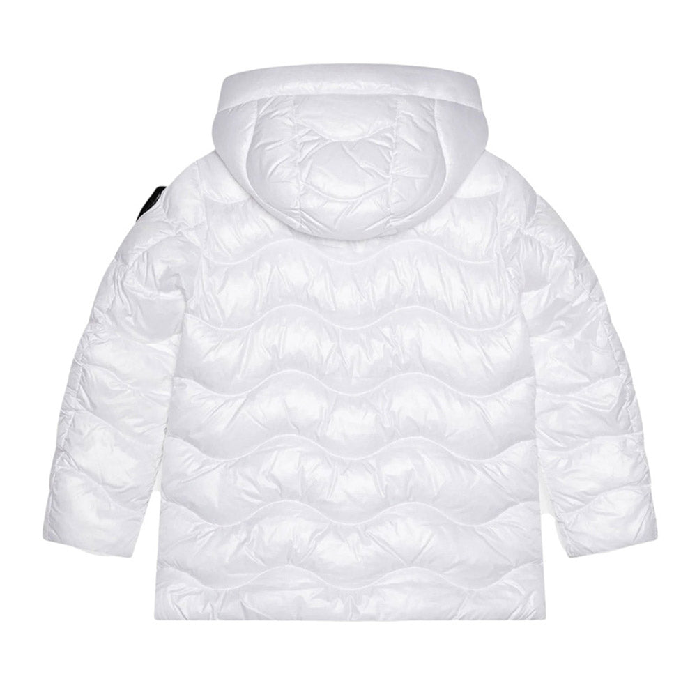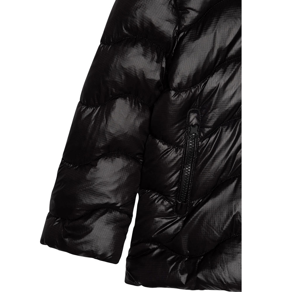 Giubbino Larose Junior realizzato in nylon lucido, caratterizzato da design trapuntato ad onde, imbottito con ovatta Sorona® Aura, cappuccio fisso con coulisse, chiusura frontale con zip, maniche lunghe, due tasche laterali con zip e coulisse sul fondo. È decorato con patch glitterata(8-16 anni) e passante con logo.