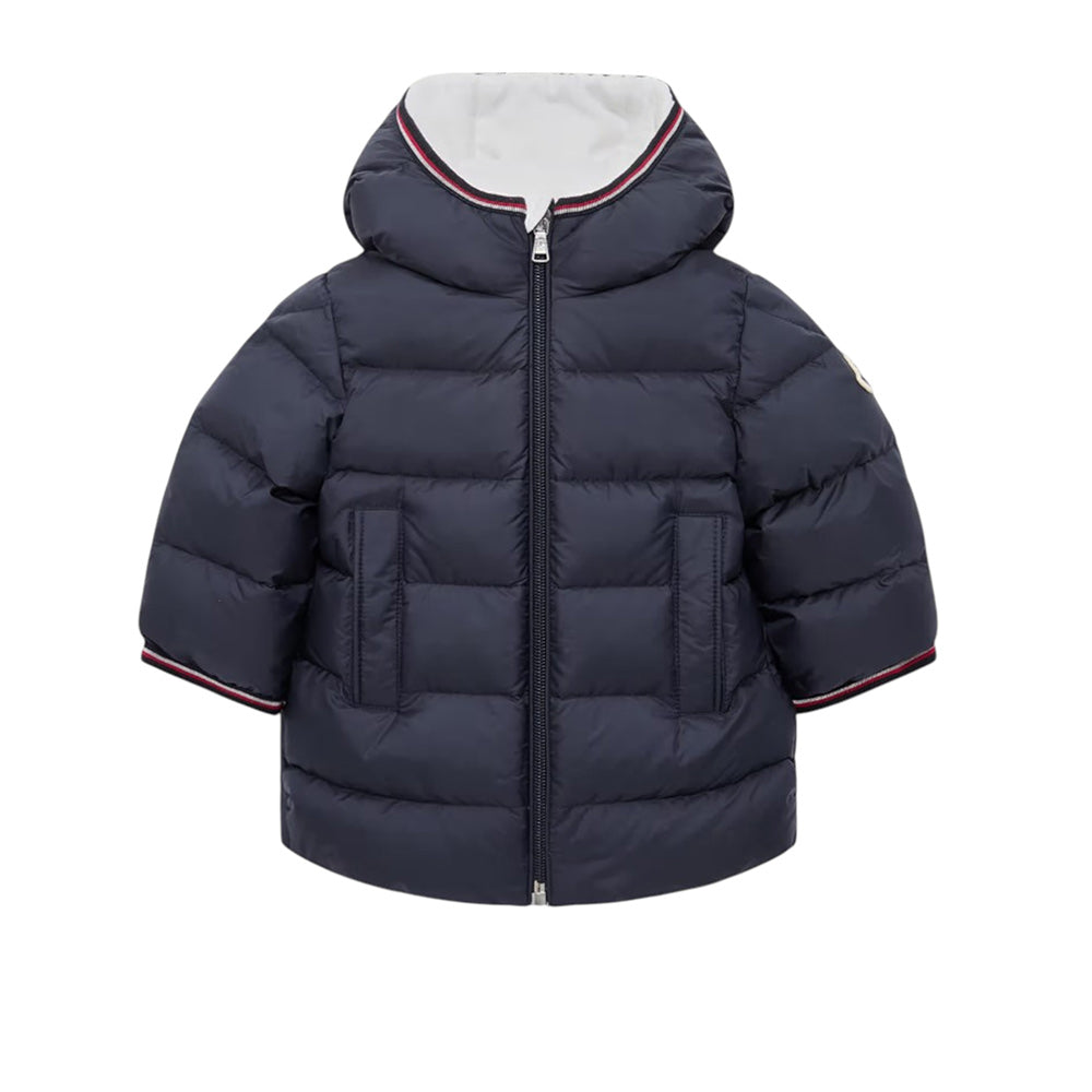 Giubbino imbottito Saito di Moncler, caratterizzato da design trapuntato, cappuccio fisso, chiusura frontale con zip, maniche lunghe con polsi elasticizzati, due tasche laterali a filetto e orlo dritto. È decorato con patch logo applicata sulla manica.