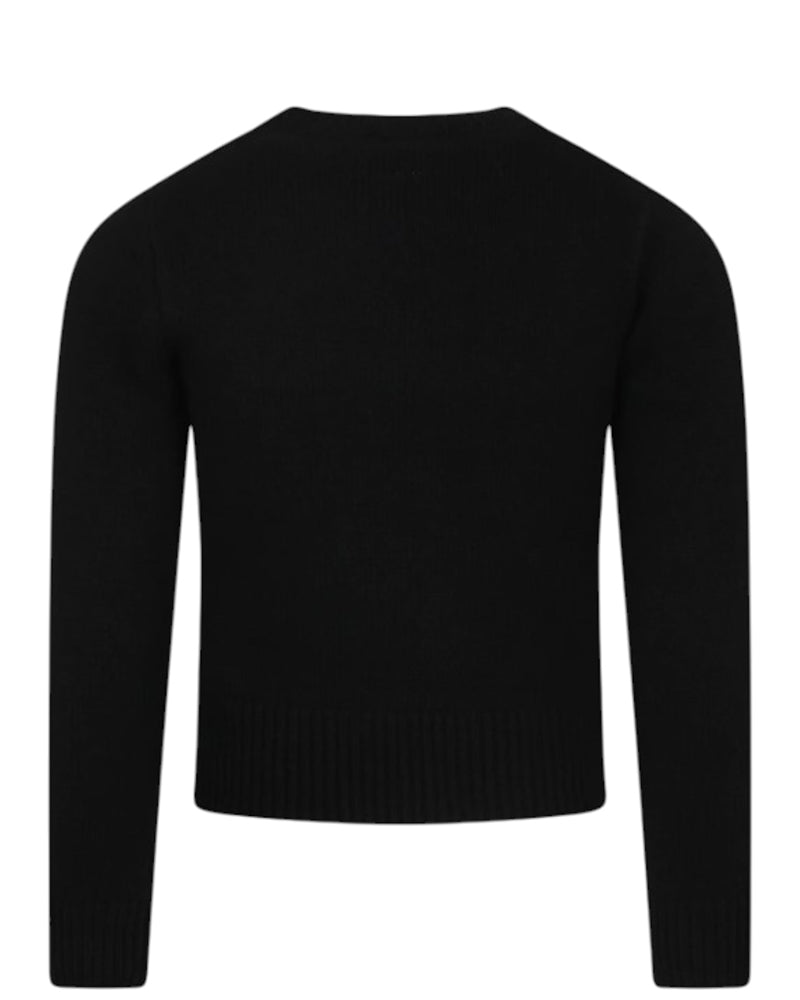 Maglia cropped realizzata in misto lana da bambina. Presenta collo tondo, maniche lunghe e finiture a coste. È decorata con logo ricamato sulla parte anteriore.