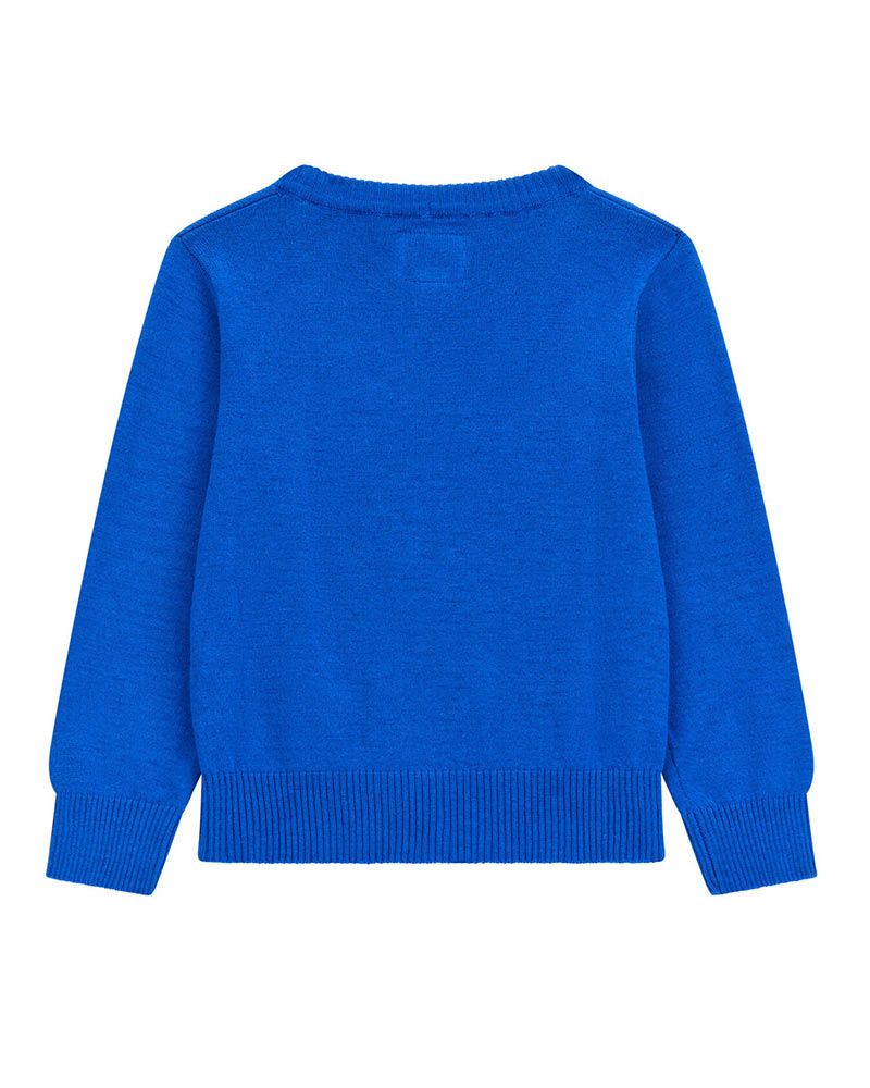 Maglia da neonato realizzata in filato di misto cotone. Presenta collo tondo, maniche lunghe, chiusura con bottoncini sulla spalla e finiture a coste. È decorata con patch logo ricamata sulla parte anteriore.