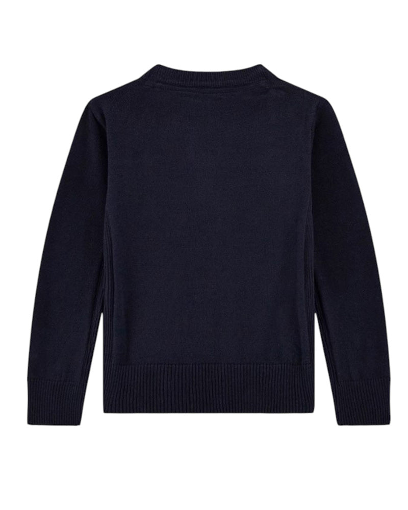 Maglia da neonato realizzata in filato di misto cotone. Presenta collo tondo, chiusura con bottoncini sulla spalla, maniche lunghe e finiture a coste. È decorata con patch logo applicata sul petto.