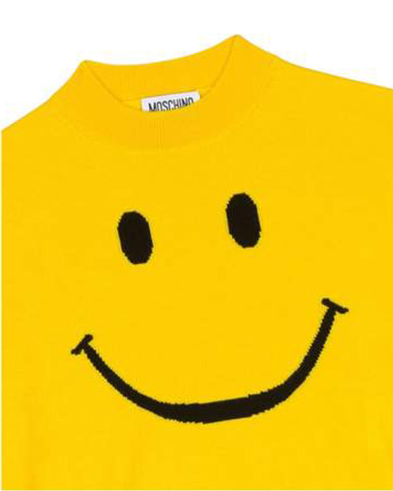 Maglia girocollo realizzata in lana a maniche lunghe. È decorata con smile ad intarsio sulla parte anteriore e logo ricamato sulla manica.