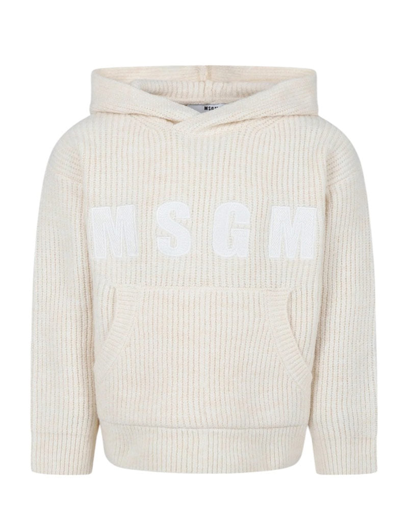 Maglia a coste con cappuccio, maniche lunghe, tasca a marsupio frontale e finiture a costine. È decorata con logo MSGM applicato sulla parte anteriore.