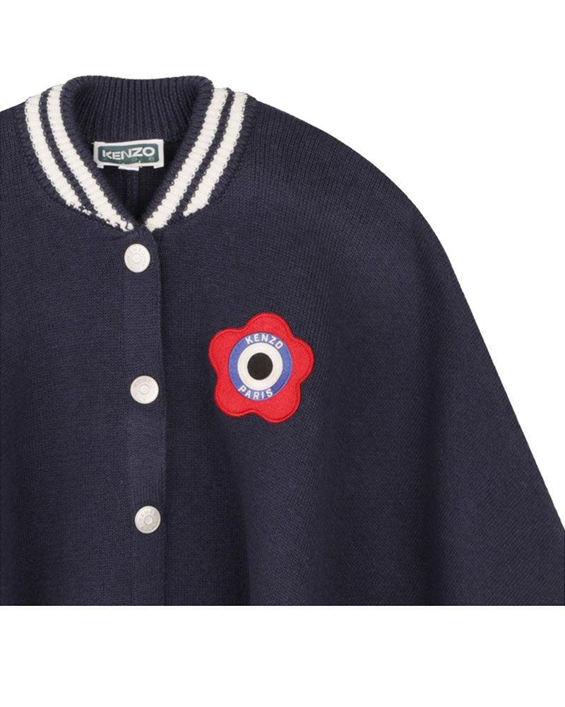 Mantella blu da bambina realizzata in misto cotone, con patch logo ricamata sul petto e chiusura con bottoncini automatici sul davanti.