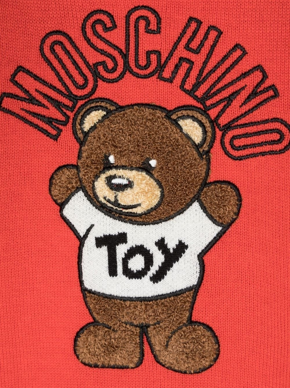 Pullover mit Rundhalsausschnitt, aufgesetztem Symbol auf der Vorderseite und Knöpfen an der Schulter.