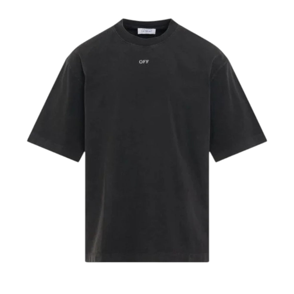 T-shirt realizzata in jersey di cotone, caratterizzata da collo rotondo a costine, maniche corte e orlo dritto. È decorata con logo Off-White stampato sul davanti e con stampa grafica sul retro.