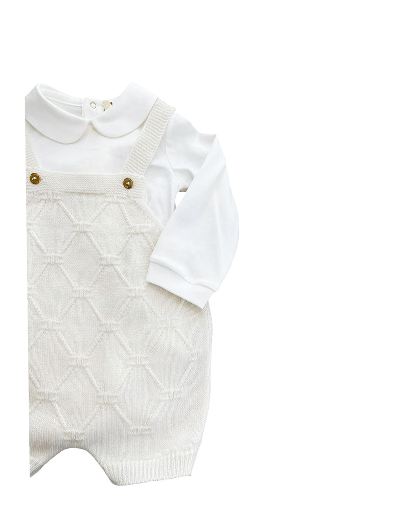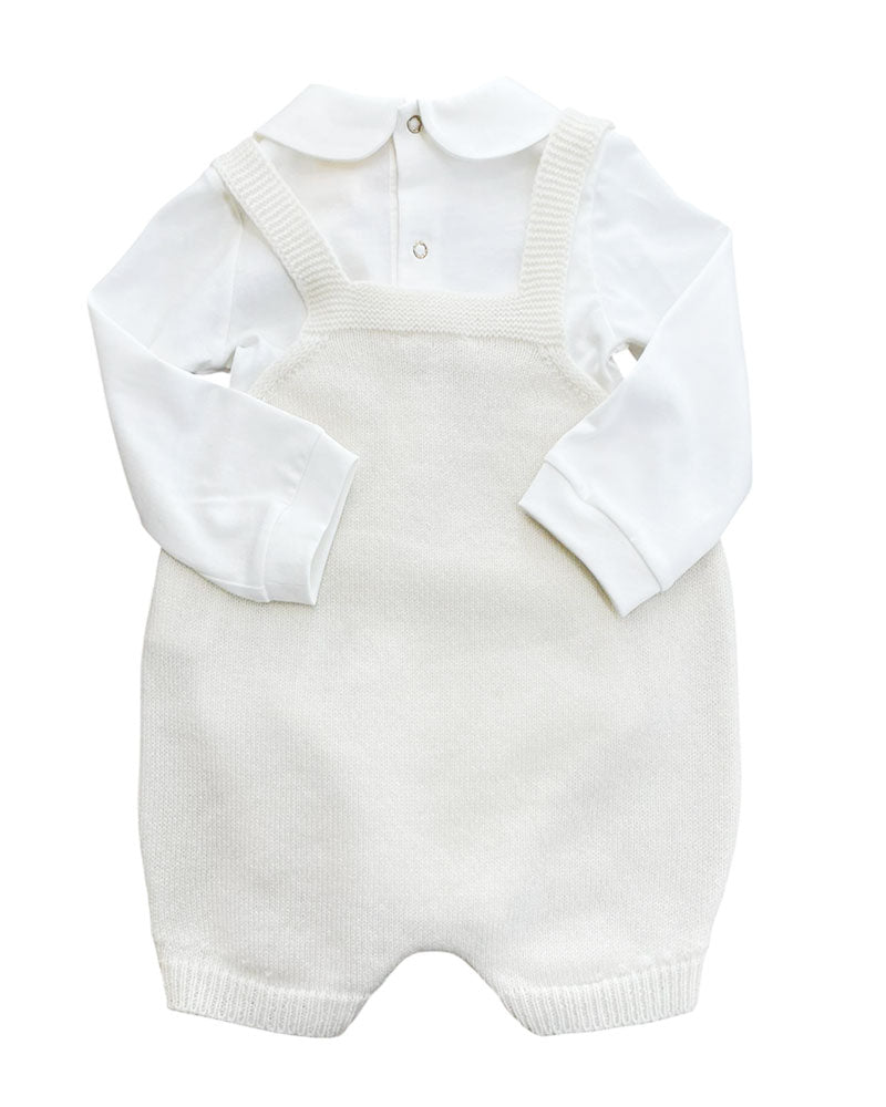 Tutina 2 pezzi pantaloncino a salopette in lana modello culotte il sotto maglia body con colletto tondo cotone biologico