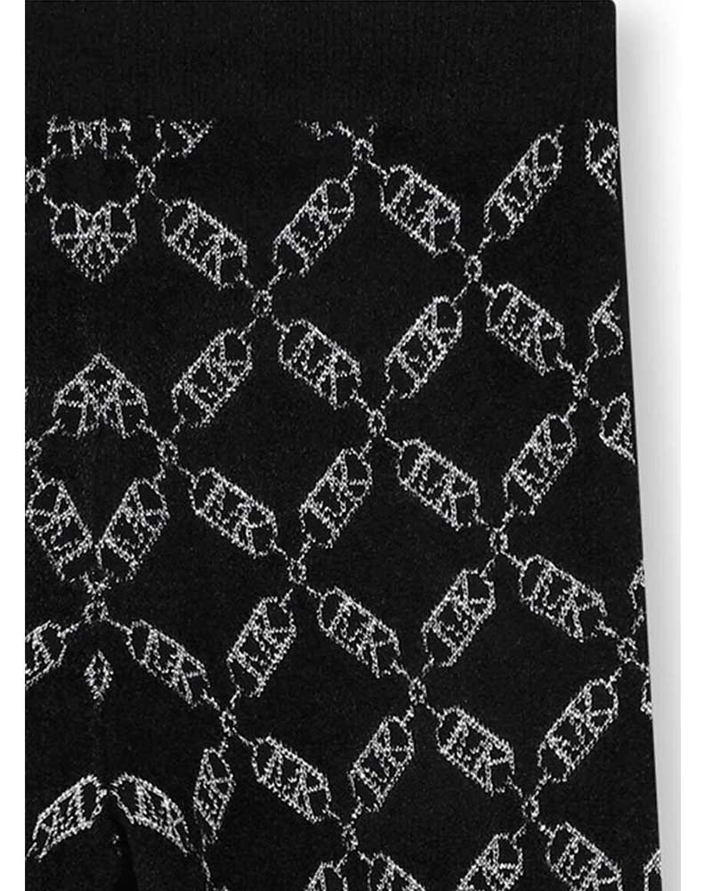 Pantaloni jogger realizzati in maglia da bambina. Presentano vita elasticizzata a coste con coulisse, motivo logo jacquard con dettagli lurex all-over, tasche oblique laterali e fondo elasticizzato a coste.