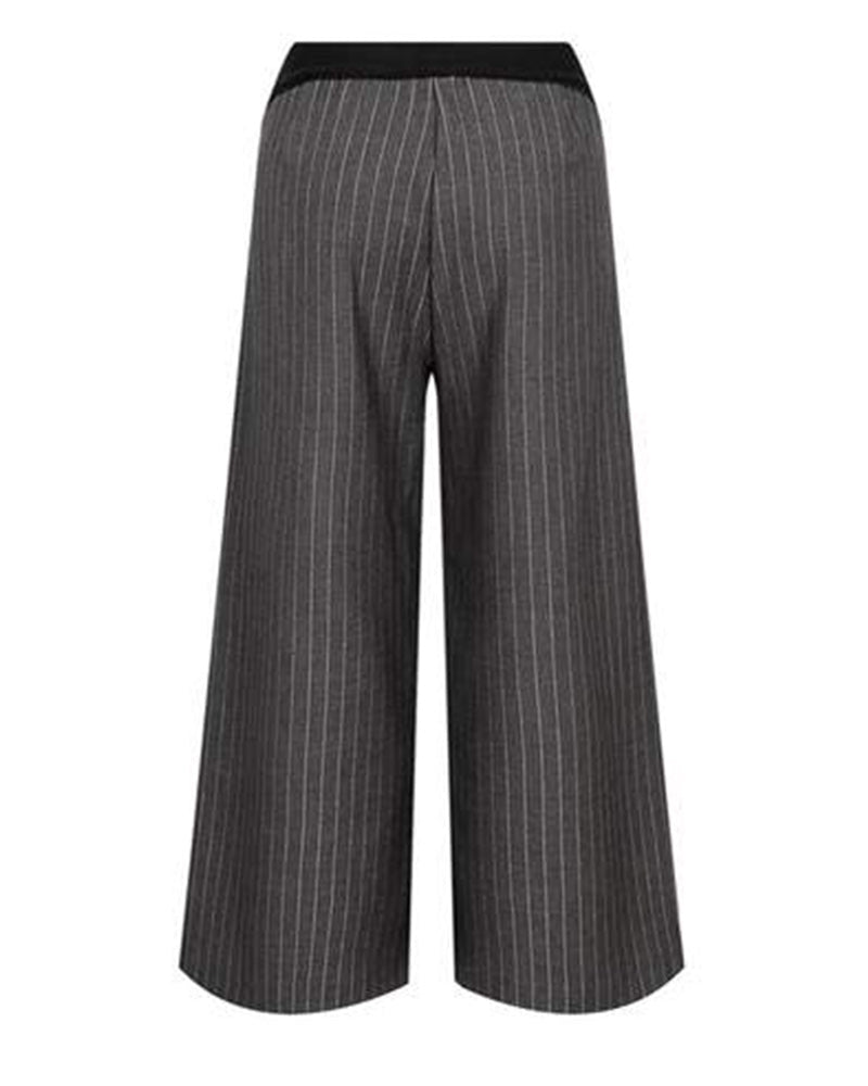 Pantaloni gessati lamé con pince sul davanti da bambina. Presentano vita elasticizzata, motivo gessato con dettaglio lurex, tasche laterali america, taglio dritto. Sono decorati con stampa logo sull'elastico in vita.